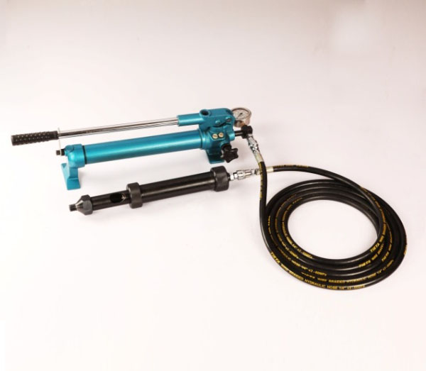 - 1臺—手動液壓油泵; 1根—5米長黑色雙層鋼絲編織膠管,工作壓力60MPa以下,試驗壓力90MPa; 1只—三通表座接頭;